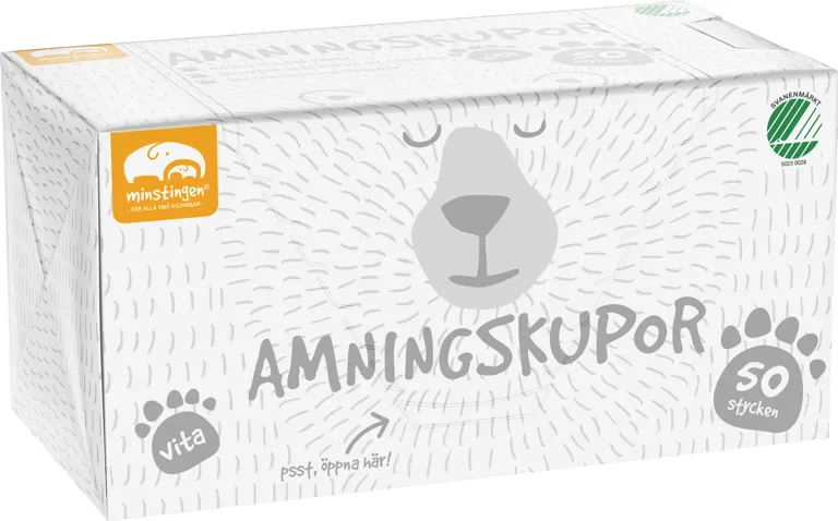 Mjuka och bekväma amningskupor med en absorberande kärna av cellulosa. Kuporna är diskret utformade och kan läggas innanför bh:n och samla upp den mjölk som läcker fram mellan amningarna. Kupan hålls på plats med en självhäftande tejp och storleken är anpassad efter kroppen med ca 11 cm i diameter.